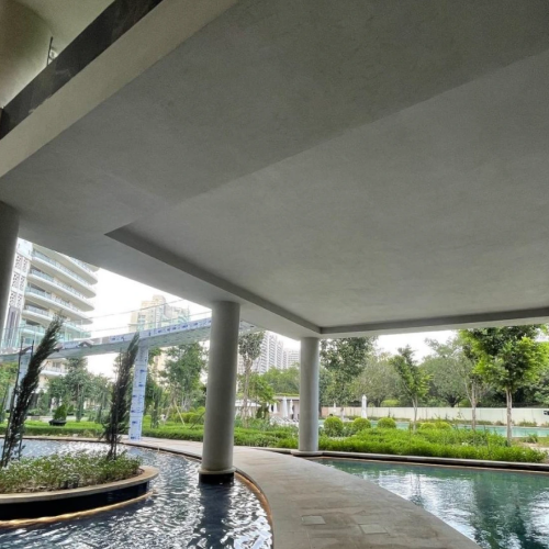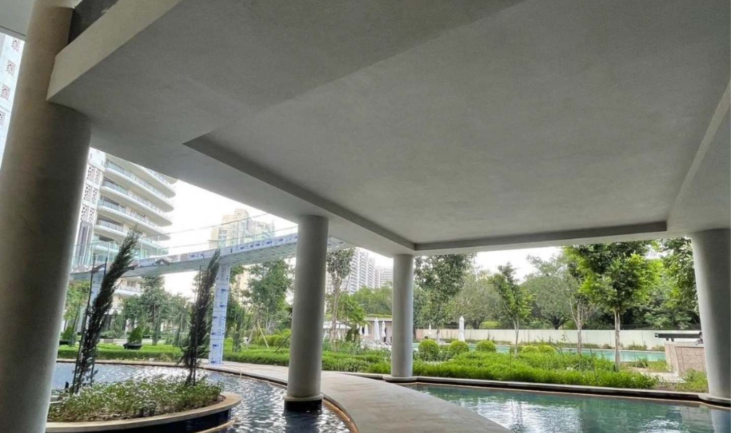 Executed for DLF with Architect Hafeez Contractor, MACE, and CBRE, this 1.2 lakh sq. ft. project involved one of the most demanding plaster applications, requiring 10–15 additional levels to correct surface undulations. Spanning 5-metre-high columns and ceiling pattas, the project was completed in 123 days and is backed by a 5-year warranty, with man-lift systems used for precision at height.