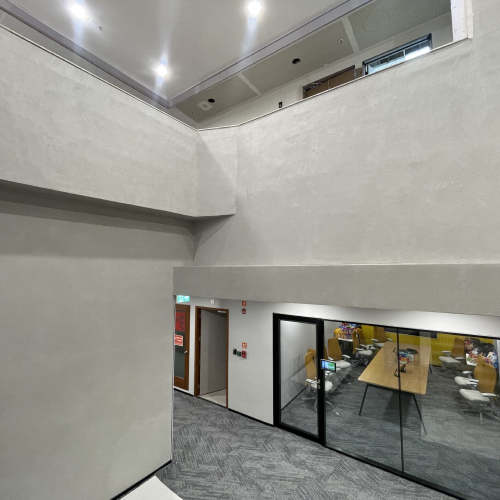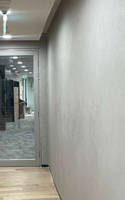 Executed for Nestlé with Space Matrix as the architect, Innovatione India Projects LLP as the contractor, and Cushman & Wakefield as the PMC, this 25,000 sq. ft. project addressed gigantic structures and joint-free walls with precision. Applied on gypsum surfaces and rough concrete ceilings, the work was completed in just 7 days and is backed by a 10-year warranty, ensuring no colour change, no cracks, and no mould, delivering a durable and refined corporate interior.
